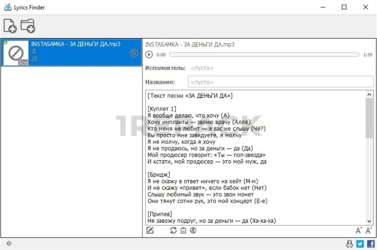 - Поддержка популярного формата ID3 тегов для работы с текстами