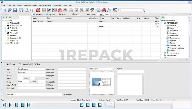 Zortam Mp3 Media Studio Pro — инструмент для организации, редактирования и управления аудиофайлами, который поддерживает различные аудиоформаты, такие как MP3, FLAC, WMA, M4A и WAV. Этот софт упрощает процесс поддержания музыкальной библиотеки в полном порядке, особенно для пользователей с обширными коллекциями файлов.Программа автоматически добавляет теги к аудиофайлам, распознает исполнителей, названия песен, альбомы, жанры и годы выпуска, а также загружает обложки альбомов и тексты песен. Эта функция позволяет избежать ручного ввода информации, сохраняя время пользователя и обеспечивая точность данных.
