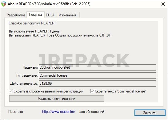 Cockos REAPER — цифровая аудиостанция (DAW), которая предлагает широкий спектр возможностей для записи, редактирования, микширования и обработки аудио. Этот инструмент популярен среди музыкантов, звукорежиссёров и продюсеров благодаря своей гибкости и обширному набору функций.Программа поддерживает множество аудио- и MIDI-треков и позволяет работать с неограниченным количеством этих треков. Пользователи могут добавлять или удалять треки по мере необходимости без каких-либо ограничений по количеству или типу. REAPER также поддерживает множество плагинов и виртуальных инструментов, что делает его одним из самых мощных решений для создания музыки на любом уровне.