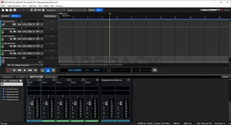 Mixcraft Pro Studio представляет собой цифровую аудиостанцию, предназначенную для создания, записи и редактирования музыки на компьютере. Программа сочетает в себе интуитивно понятный интерфейс с профессиональными инструментами, что делает её подходящей как для начинающих музыкантов, так и для опытных продюсеров. Mixcraft Pro Studio обеспечивает гибкость в работе с различными аудио и MIDI проектами, позволяя реализовать самые разнообразные творческие задумки.Основной функционал программы включает многодорожечную запись и редактирование аудиофайлов, что позволяет одновременно работать с несколькими инструментами и вокальными дорожками. Поддержка MIDI-секвенсирования дает возможность создавать сложные музыкальные аранжировки с использованием виртуальных инструментов. Это делает Mixcraft Pro Studio идеальным инструментом для написания музыки, аранжировок и аранжировок для различных проектов.