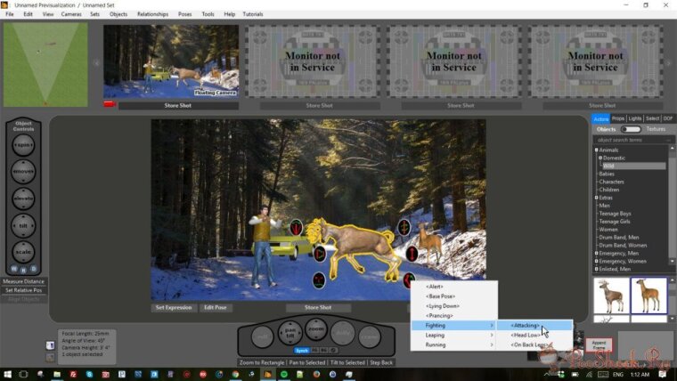 FrameForge также поддерживает точную настройку параметров камеры, таких как фокусное расстояние, угол обзора, и даже симуляцию работы с реальными объективами. Это позволяет максимально точно представить, как сцена будет выглядеть на экране. Программа подходит для подготовки как крупных кинофильмов, так и небольших проектов.