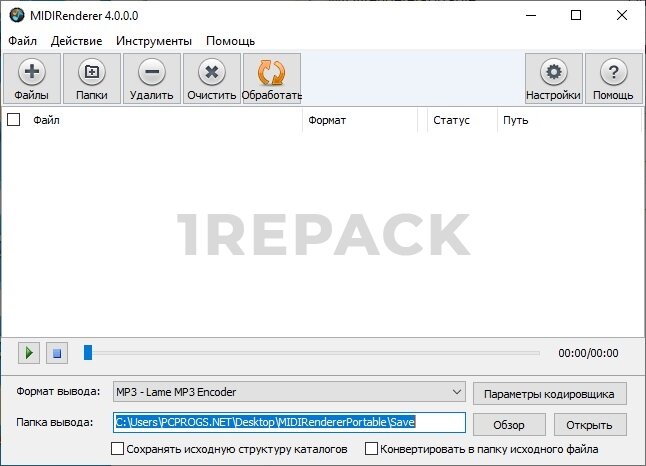 Программа поддерживает пакетную обработку, что позволяет пользователям одновременно конвертировать несколько файлов MIDI, экономя время и усилия. MidiRenderer также предоставляет гибкие настройки, включая выбор битрейта, частоты дискретизации и формата выходного файла, что делает его удобным для разных аудиопроектов.