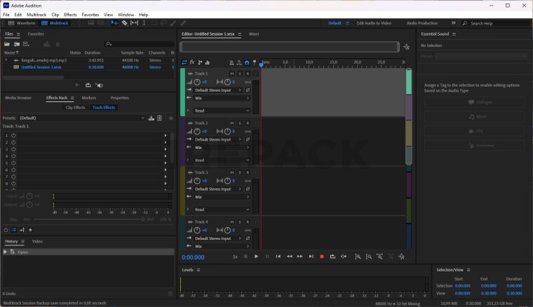 Интерфейс Adobe Audition интуитивно понятен и легко настраивается. Пользователи могут работать в режиме спектрального анализа для точного редактирования и восстановления звука, а также в многодорожечном режиме для микширования.
