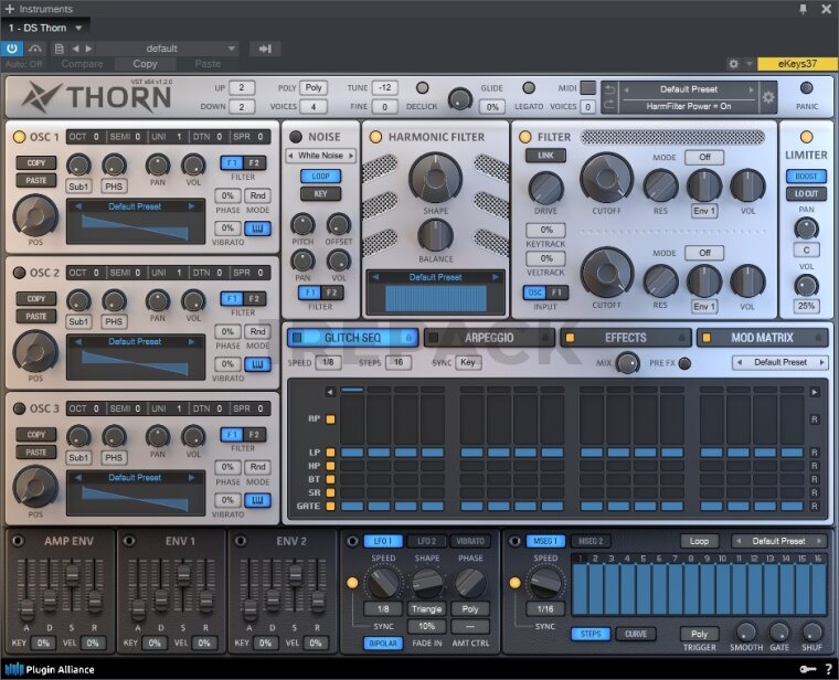Dmitry Sches Thorn — это программный синтезатор, который предоставляет широкий спектр возможностей для создания электронных звуков и эффектов. Он предназначен для музыкантов, продюсеров и саунд-дизайнеров, которые хотят создавать уникальные синтезированные звуки для электронной музыки, саундтреков и других проектов. Thorn предлагает мощные инструменты для создания звуков с высокой степенью детализации и позволяет пользователям использовать как стандартные, так и уникальные методы синтеза.Thorn поддерживает аддитивный и спектральный синтез, что даёт доступ к необычным звуковым текстурам и позволяет создавать как классические синтезированные звуки, так и совершенно новые аудиоволны. Эти технологии делают его гибким инструментом для работы с различными стилями музыки, от экспериментальной электроники до поп-музыки.