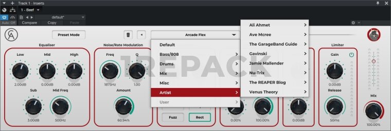 Программное обеспечение включает инструменты для автоматизации параметров эффектов, что позволяет динамически изменять звучание во время воспроизведения. Это особенно полезно для создания живых выступлений и динамичных музыкальных композиций, где важно изменять звук в реальном времени. Кроме того, Caelum Audio Beef предлагает предустановленные пресеты, которые служат отличной отправной точкой для дальнейшей настройки и адаптации под конкретные нужды проекта.