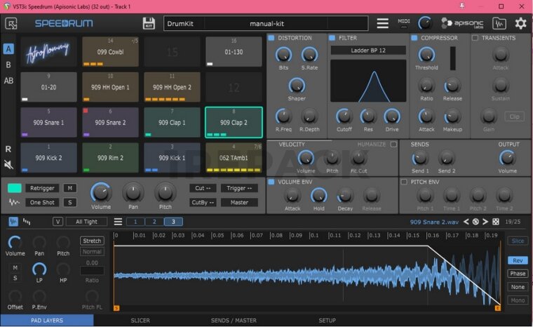 Особенности Apisonic Labs Speedrum включают поддержку многослойных ударных дорожек, что позволяет создавать более насыщенные и комплексные ритмы. Программа оснащена библиотекой готовых ударных звуков и паттернов, которые можно использовать как основу для собственных треков. Дополнительно, Speedrum предлагает инструменты для синтеза новых ударных звуков, что расширяет возможности креативного создания музыки. Интеграция с MIDI-контроллерами обеспечивает удобное управление параметрами программы во время живых выступлений или записи.