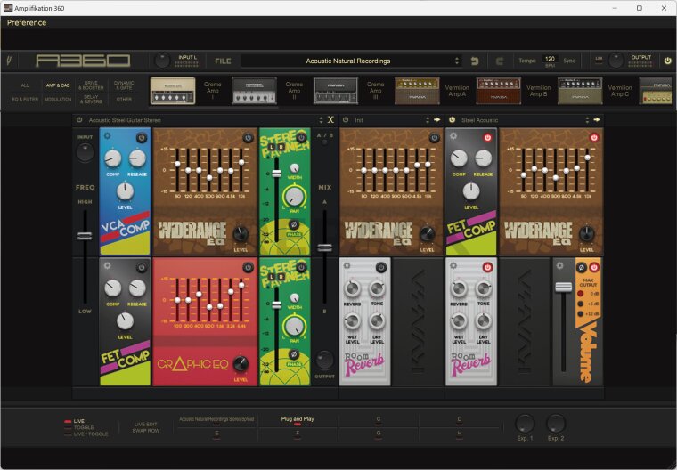 - Эмуляция гитарных кабинетов и микрофонов для точного контроля звука