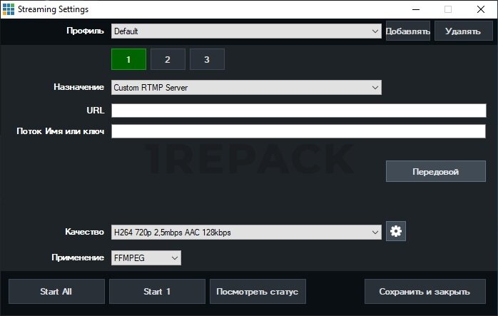 - Прямой стриминг на платформы YouTube, Facebook и Twitch;