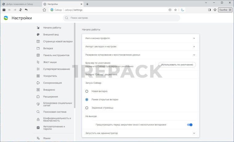 Catsxp поддерживает расширения и дополнения, которые можно использовать для настройки браузера под свои нужды. Пользователи могут добавить необходимые функции, такие как блокировщики рекламы или менеджеры паролей, что делает работу с браузером гибкой и удобной.