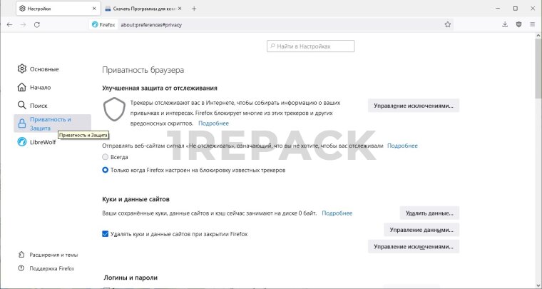 LibreWolf Browser — браузер с открытым исходным кодом, основанный на Mozilla Firefox, ориентированный на обеспечение высокой степени конфиденциальности и безопасности пользователей. Программа разработана для тех, кто ценит приватность в интернете и стремится минимизировать отслеживание и сбор данных о своей активности. Интерфейс LibreWolf интуитивно понятен, что позволяет легко пользоваться всеми функциями даже без специальных технических знаний.Основная функция LibreWolf Browser заключается в предоставлении безопасного и приватного веб-серфинга. Браузер автоматически блокирует трекеры, рекламу и другие нежелательные элементы, что способствует более чистому и быстрому просмотру веб-страниц. Пользователи могут наслаждаться интернетом без постоянных всплывающих окон и навязчивых объявлений, что улучшает общее впечатление от использования браузера.