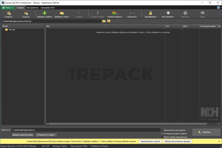 NCH Express Zip Plus — удобное приложение для работы с архивами, предназначенное для создания, открытия и управления архивными файлами в различных форматах. Программа поддерживает популярные форматы архивов, такие как ZIP, RAR, 7Z и TAR, что делает её универсальным решением для сжатия данных и экономии места на диске.Первой ключевой функцией является сжатие файлов для уменьшения их размера и сохранения дискового пространства. Пользователи могут создавать ZIP-архивы из отдельных файлов и папок, что особенно удобно при отправке больших объемов данных по электронной почте или при переносе на внешние носители.