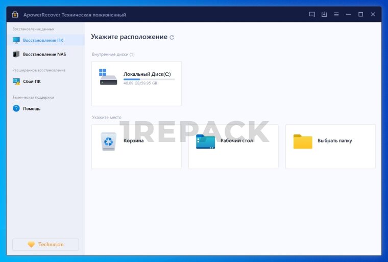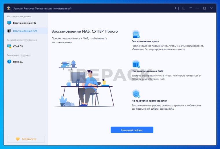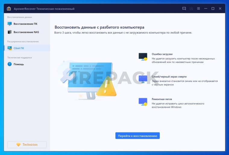 - Поддержка восстановления из системных разделов и повреждённых дисков