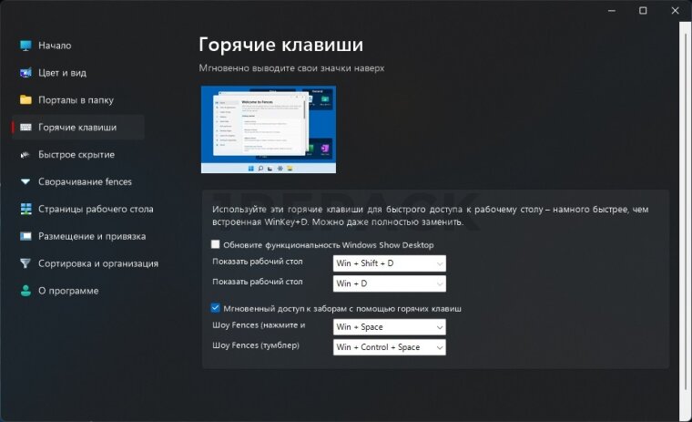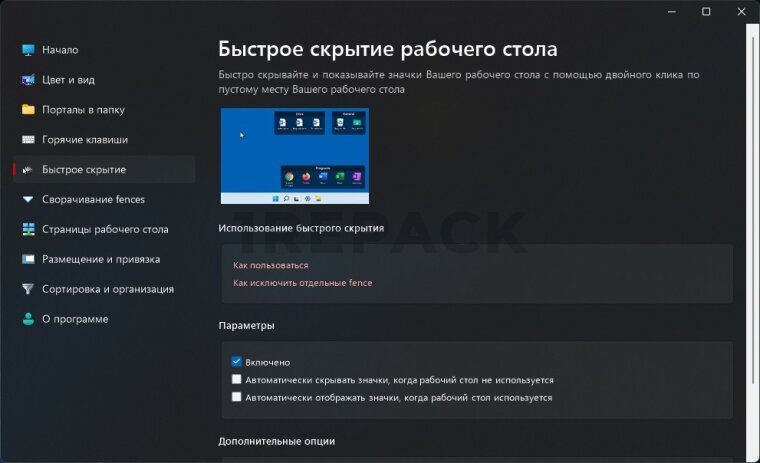 - Возможность мгновенно скрывать или показывать элементы рабочего стола;