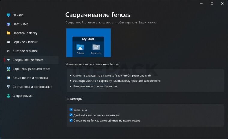 Программа также поддерживает функцию «автоскрытия», позволяя мгновенно скрыть или показать все «ограждения» двойным кликом. Это особенно полезно для освобождения пространства на экране, когда требуется быстрый доступ к основному фону рабочего стола.