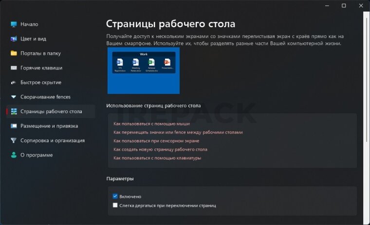 Для пользователей, которым нужно часто переключаться между различными наборами иконок, Fences позволяет создавать несколько страниц на рабочем столе. Это позволяет организовать отдельные рабочие пространства для различных проектов или задач.