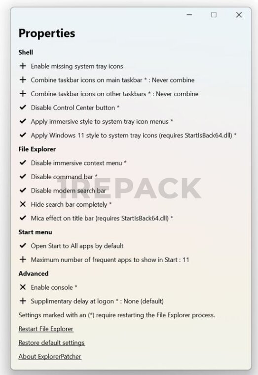 ExplorerPatcher — это утилита для настройки интерфейса Windows, которая позволяет изменять и оптимизировать различные элементы системы, такие как меню «Пуск», панель задач и проводник. Программа ориентирована на пользователей, которые хотят персонализировать интерфейс Windows и сделать его более удобным и привычным. Она возвращает некоторые функции и элементы, которые отсутствуют в последних версиях Windows, что полезно для тех, кто предпочитает классический вид системы.Основная функция ExplorerPatcher — настройка панели задач, включая её расположение, стиль и поведение. Пользователи могут изменить положение панели задач, вернуть привычный вид иконок и значков, а также настроить прозрачность и размеры. Это особенно удобно для тех, кто привык к более старым версиям Windows и хочет сохранить знакомую структуру интерфейса.