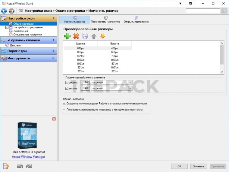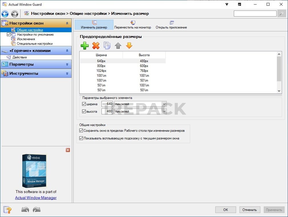 Функции и возможности Actual Window Guard: