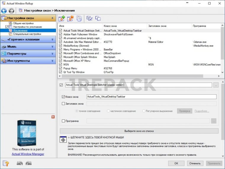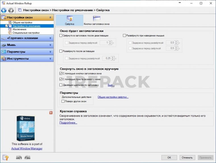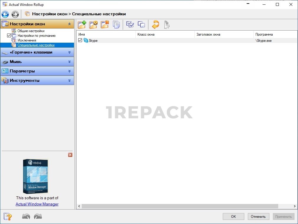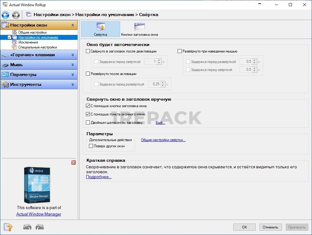 Actual Window Rollup — программа, с чьей помощью можно свернуть любое окно в Windows до заголовка, не убирая его полностью с экрана. Такой способ сворачивания позволяет оставить приложение на виду, но при этом освободить рабочее пространство. Визуально окно остаётся в виде тонкой полоски — остаётся только его верхняя панель.После установки в каждое окно добавляется новая кнопка, с помощью которой выполняется сворачивание. Также можно задать комбинацию клавиш, чтобы не использовать мышь. В отличие от обычной минимизации, окно не уходит в панель задач и не теряется среди других, а просто становится компактным, оставаясь на том же месте.