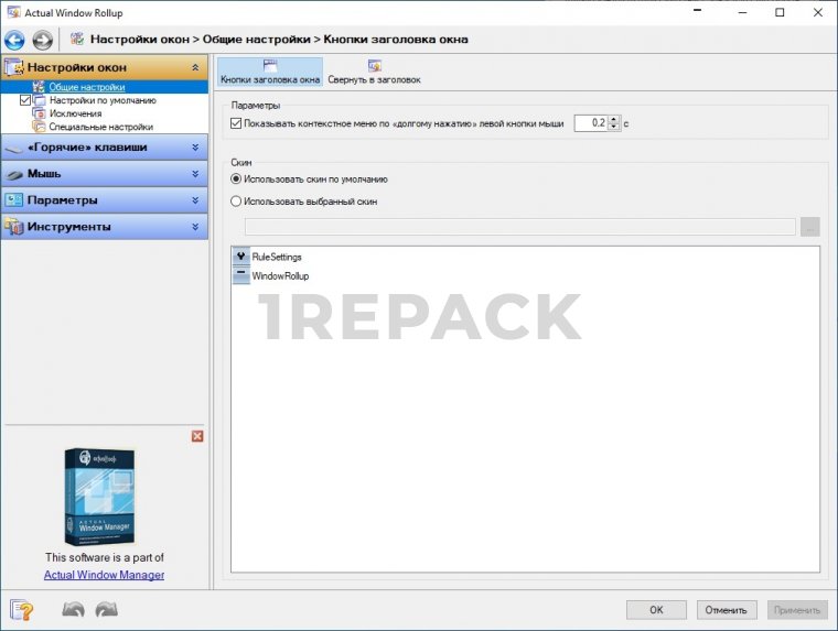 Настройки позволяют задать, как и когда должно происходить сворачивание: вручную, при запуске, при потере фокуса или через определённый промежуток времени. Можно задать правила для отдельных программ — где функция будет работать, а где нет. Также есть возможность отключить отображение кнопки или изменить её стиль.
