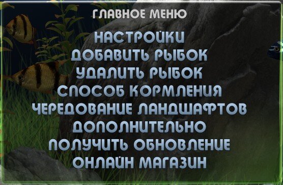 - Настраиваемый состав аквариума, количество рыб, типы фона