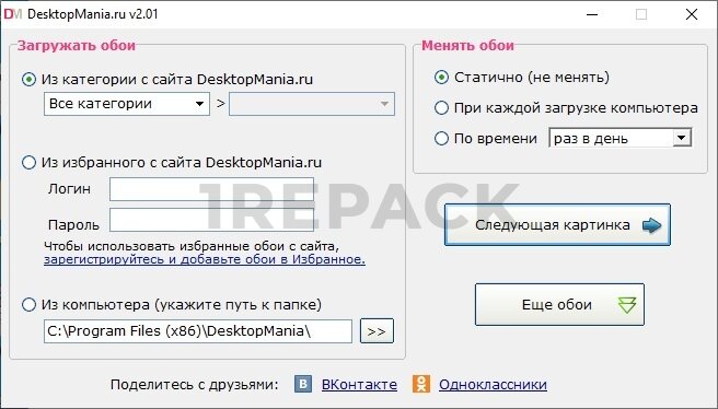 DesktopMania — программа для Windows, предназначенная для автоматической смены фоновых изображений на рабочем столе. Утилита ориентирована на пользователей, которые хотят сделать оформление системы более разнообразным и динамичным, при этом не тратя время на ручной выбор и установку обоев. Работает с локальными изображениями и предлагает доступ к онлайн-коллекции.Программа позволяет задать определённый интервал, через который изображения будут автоматически меняться. В качестве источника можно использовать папку на жёстком диске либо галерею с сервера разработчика. Подключение к онлайн-базе открывает доступ к тысячам изображений, отсортированных по категориям и темам — от природы и архитектуры до абстракции и техники.