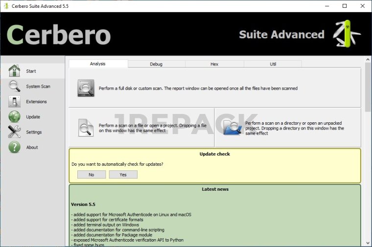 Особенности Cerbero Suite Advanced включают поддержку множества форматов файлов, в том числе исполняемых файлов Windows, macOS и Linux, а также различных архивных и мультимедийных форматов. Программа оснащена мощным интерфейсом, который предоставляет интуитивно понятные инструменты для навигации и анализа. Кроме того, Cerbero Suite Advanced поддерживает интеграцию с другими инструментами анализа, что расширяет её функциональные возможности и позволяет создавать более комплексные рабочие процессы.
