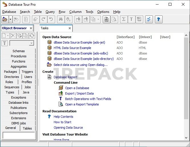 Database Tour Pro — это многофункциональная программа для работы с базами данных, которая предоставляет пользователям инструменты для создания, редактирования, анализа и управления базами данных различных форматов. Программа поддерживает работу с популярными типами баз данных, такими как Access, Paradox, dBase, FoxPro, текстовые файлы, CSV и SQL-форматы. Database Tour Pro разработана для профессиональных пользователей, таких как программисты, разработчики баз данных и аналитики, которым нужно эффективно управлять и анализировать данные.Программа предоставляет возможности для выполнения SQL-запросов, экспорта и импорта данных, автоматизации обработки данных с помощью скриптов и создания отчётов. Database Tour Pro также позволяет просматривать и редактировать содержимое таблиц, создавать новые таблицы, изменять структуру базы данных, а также проводить сложные операции фильтрации и сортировки данных.