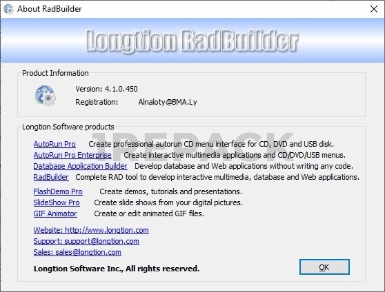 Longtion RadBuilder — это программное обеспечение для разработки приложений с визуальным интерфейсом, которое позволяет создавать интерактивные мультимедийные приложения, базы данных и веб-приложения без необходимости написания кода. Программа предназначена для пользователей, которым нужно быстро и просто создавать приложения с графическим интерфейсом, такие как учебные программы, интерактивные презентации, базы данных, CD/DVD-меню, а также автономные приложения для Windows.Основная задача Longtion RadBuilder — это предоставление платформы для создания приложений с помощью визуального конструктора, где пользователи могут перетаскивать элементы на экран и настраивать их параметры. Программа ориентирована на разработчиков, педагогов, дизайнеров, маркетологов и всех, кто нуждается в создании программ без необходимости глубоких знаний программирования.
