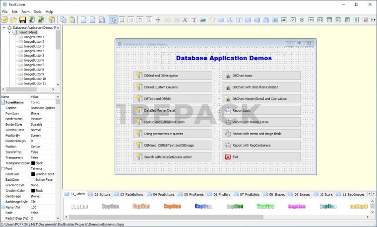 Longtion RadBuilder — это универсальный инструмент для создания приложений, презентаций и баз данных, который подходит как для начинающих пользователей, так и для продвинутых разработчиков, нуждающихся в создании приложений с минимальными усилиями. Программа предлагает мощные функции для создания графического интерфейса, работы с данными и добавления интерактивных элементов.