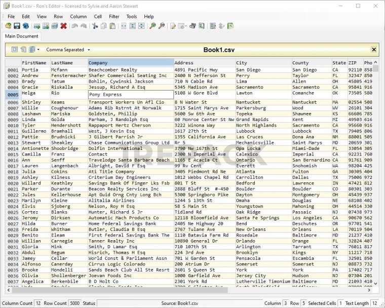 Rons Data Edit Pro — редактор табличных файлов, разработанный специально для работы с текстовыми форматами данных, такими как CSV, TSV и другие файлы с разделителями. Программа даёт возможность вручную просматривать, изменять и управлять содержимым таблиц без искажений структуры, которые часто возникают при использовании классических офисных редакторов.Отличительной чертой Rons Data Edit Pro является точность работы с данными: она не пытается преобразовывать текст в даты, числа или формулы, как это делают электронные таблицы. В интерфейсе предусмотрена возможность настройки внешнего вида, включение светлой или тёмной темы, а также фиксация строк и столбцов для удобной навигации по широким и длинным таблицам.