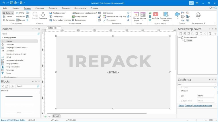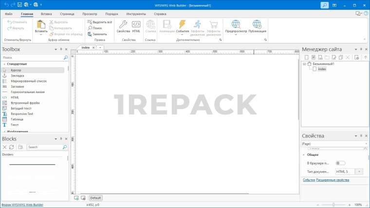 WYSIWYG Web Builder — программа для создания веб-сайтов с визуальным редактором, позволяющая пользователям создавать веб-страницы без навыков программирования. Интерфейс основан на технологии «что видишь, то и получаешь» (WYSIWYG), что означает, что пользователь сразу видит, как будет выглядеть конечный сайт.Программа поддерживает функцию drag-and-drop, что делает процесс добавления элементов, таких как текст, изображения, кнопки и другие элементы интерфейса, быстрым и интуитивно понятным. Это позволяет легко управлять макетом страницы, не требуя от пользователя знаний HTML или CSS.