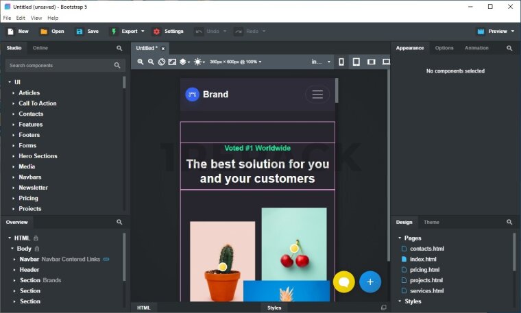 Bootstrap Studio — это приложение для создания адаптивных веб-сайтов с использованием фреймворка Bootstrap. Оно предоставляет разработчикам и дизайнерам удобный визуальный интерфейс для быстрой и эффективной разработки современных веб-проектов.Программа оснащена широким набором компонентов, которые можно перетаскивать на рабочее пространство и настраивать под свои нужды. Сюда входят сетки, кнопки, навигационные панели, формы и другие элементы, что позволяет создавать сложные макеты без глубоких знаний в программировании.