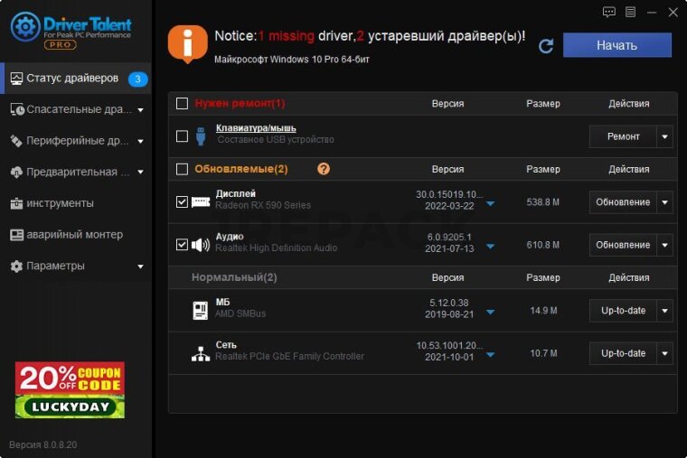 Driver Talent Pro — это профессиональная программа для управления драйверами на компьютере, которая предназначена для автоматической установки, обновления и восстановления драйверов устройств. Она помогает пользователям поддерживать актуальное состояние всех драйверов на системе, обеспечивая стабильную работу оборудования и предотвращая ошибки, связанные с устаревшими или отсутствующими драйверами. Программа полезна для всех, кто хочет избежать проблем с оборудованием и повысить производительность системы за счёт своевременного обновления драйверов.Driver Talent Pro сканирует систему и автоматически определяет, какие драйверы нуждаются в обновлении, установке или замене. Программа загружает нужные версии драйверов из своей обширной базы данных и устанавливает их на компьютер. Это избавляет пользователей от необходимости искать и загружать драйверы вручную, что особенно удобно при работе с большим количеством устройств или после переустановки операционной системы.