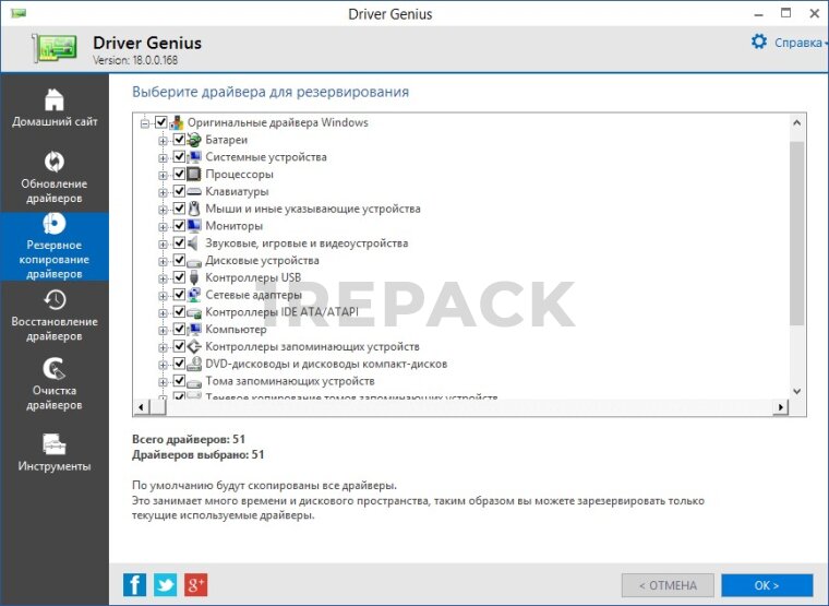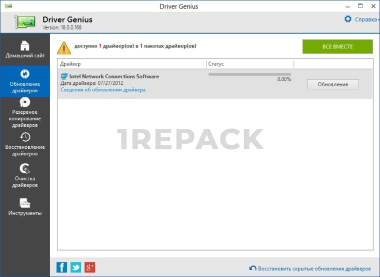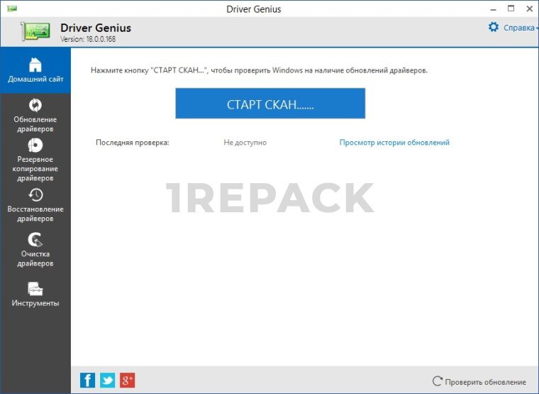 - Автоматическое сканирование системы на наличие устаревших и отсутствующих драйверов