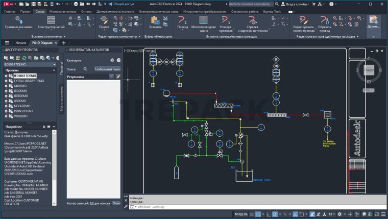 AutoCAD Electrical 2024 — аддон для проектирования электрических систем и автоматизации создания электрических схем. Программа ориентирована на инженеров-электриков и проектировщиков, которым необходимо разрабатывать и документировать системы управления, панели управления, электрические сети и схемы. AutoCAD Electrical предоставляет инструменты для автоматизации задач проектирования, что ускоряет создание электрических схем и снижает количество ошибок.Одной из ключевых особенностей программы является наличие обширной библиотеки электрических компонентов, таких как реле, выключатели, контакторы, предохранители и другие элементы, соответствующие мировым стандартам (IEC, ANSI, JIC, IEEE и др.). Эти библиотеки позволяют инженерам быстро добавлять стандартные компоненты в схемы и автоматизировать их подключение, что значительно сокращает время на проектирование.