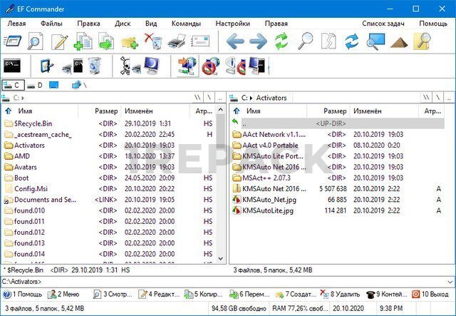 EF Commander — это мощный и многофункциональный файловый менеджер для Windows, предназначенный для эффективного управления файлами и папками на компьютере. Программа предлагает пользователям классический двухпанельный интерфейс, что упрощает перемещение, копирование и организацию данных. EF Commander включает в себя множество дополнительных функций, таких как архивирование, работа с FTP, управление процессами, синхронизация папок и другие инструменты, которые делают его универсальным решением для пользователей с разными потребностями.Одной из особенностей EF Commander является поддержка различных архивных форматов, таких как ZIP, RAR, TAR, GZ и другие, что позволяет пользователям легко создавать, извлекать и управлять архивами без необходимости использования сторонних программ. Программа также поддерживает интеграцию с антивирусным ПО, что позволяет сканировать архивы и файлы на наличие вирусов непосредственно через файловый менеджер.