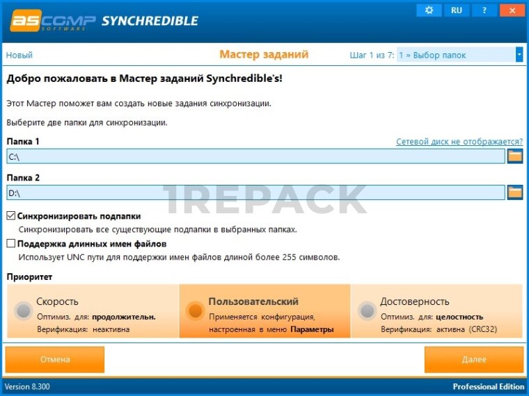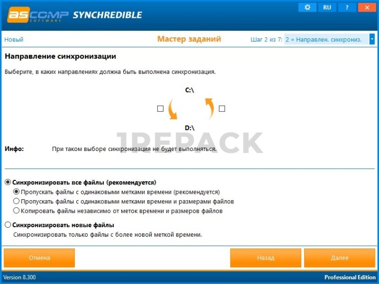 - Настройка синхронизации как в одну, так и в обе стороны;