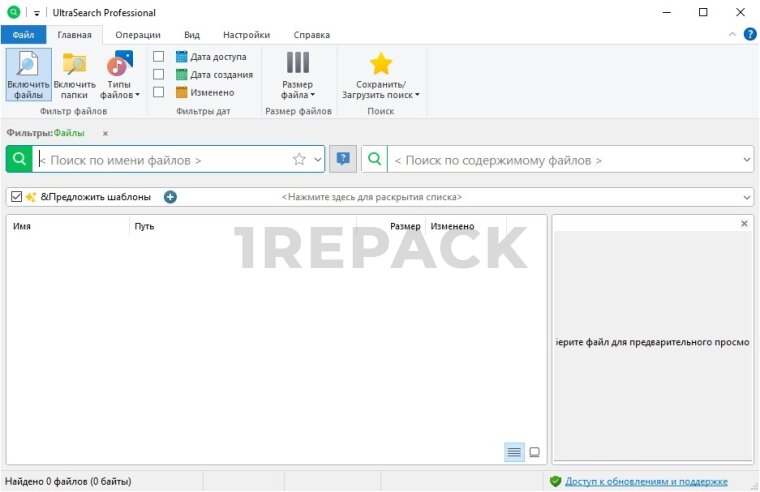 UltraSearch поддерживает широкий спектр фильтров, что позволяет конкретизировать запросы по типу файлов, дате модификации, размеру и другим критериям. Это делает поиск еще более точным и позволяет легко находить специфичные файлы, даже если их много.