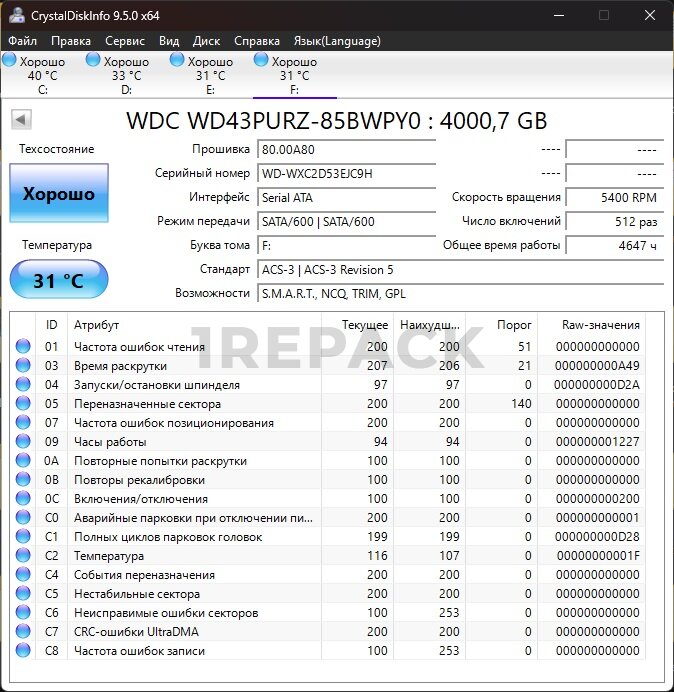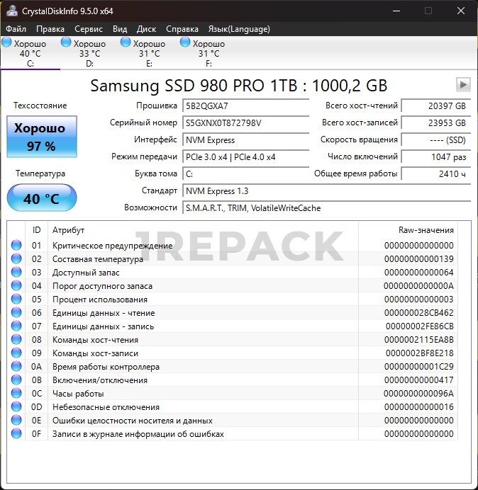 CrystalDiskInfo 9.7.2 на русском (SSD / HDD)