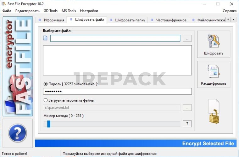 Fast File Encryptor — это программное обеспечение, предназначенное для быстрого и надёжного шифрования файлов и папок на вашем компьютере. Программа ориентирована на пользователей, которым необходимо защитить свои конфиденциальные данные от несанкционированного доступа. Fast File Encryptor обеспечивает высокий уровень безопасности и поддерживает различные методы шифрования, что делает её эффективным инструментом для защиты личной и корпоративной информации.Одной из ключевых особенностей Fast File Encryptor является его способность шифровать файлы и папки в несколько кликов. Программа предлагает интуитивно понятный интерфейс, который позволяет пользователям быстро выбрать нужные файлы или директории для шифрования, указать пароль и выполнить операцию. В дополнение к шифрованию, программа также поддерживает функции дешифровки, что позволяет легко восстанавливать зашифрованные данные при необходимости.