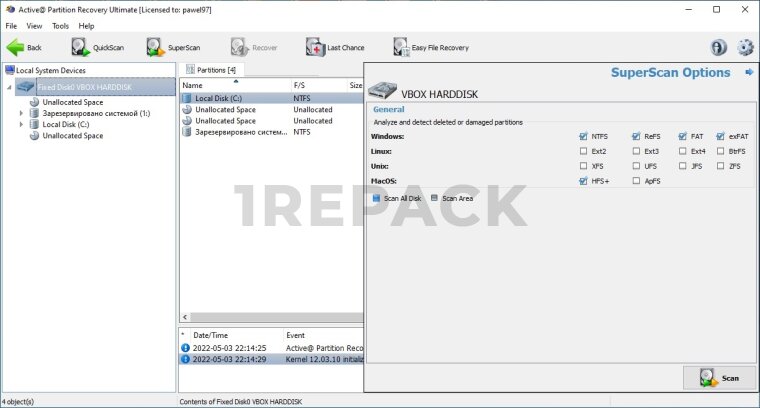 - Поддержка всех основных файловых систем, таких как NTFS, FAT32, exFAT, Ext2/Ext3/Ext4, HFS+