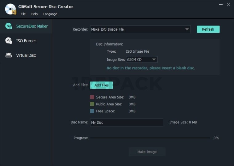 GiliSoft Secure Disc Creator — это программное обеспечение для создания защищённых дисков и разделов на различных носителях информации. С его помощью пользователи могут записывать данные на CD, DVD и USB-накопители с применением шифрования, обеспечивая высокий уровень безопасности и конфиденциальности.Программа позволяет разделять носитель на открытый и защищённый разделы. Открытая часть доступна всем, кто использует носитель, тогда как доступ к защищённой области возможен только после ввода пароля. Это особенно удобно при передаче носителей информации, когда часть данных должна оставаться скрытой от посторонних.