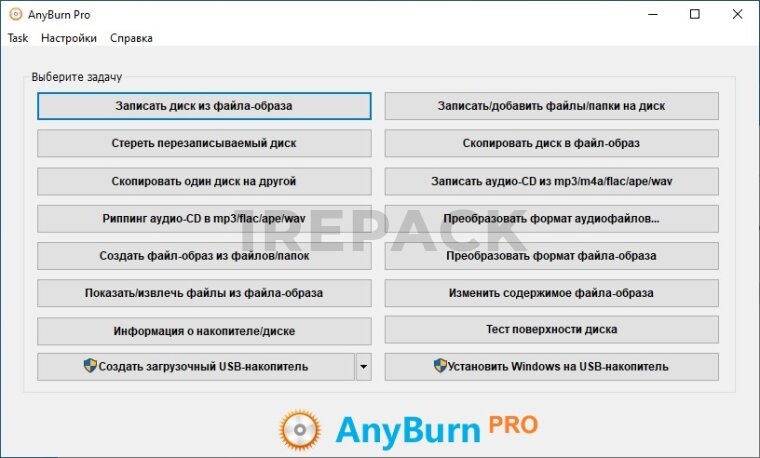 AnyBurn Pro — это программа для записи, копирования и управления образами дисков, которая поддерживает работу с CD, DVD и Blu-ray. Программа позволяет записывать данные на диски, создавать и монтировать образы, а также копировать диски для резервного хранения или переноса информации. Она подходит для пользователей, которым требуется надёжный инструмент для работы с физическими носителями и создания образов.Основная функция программы — запись файлов и папок на диски. AnyBurn Pro поддерживает разные типы данных, включая мультимедийные файлы, документы, образы и архивы, что делает её универсальной для различных нужд, от создания музыки до резервного копирования документов.