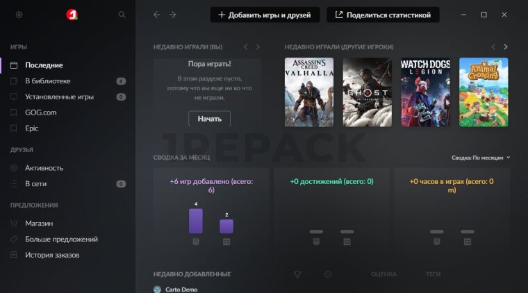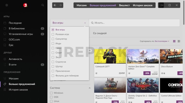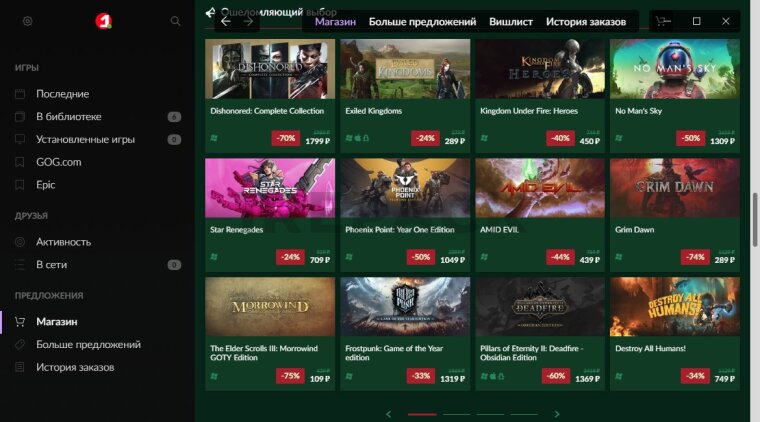 - Интеграция с Steam, Epic Games Store и другими сервисами