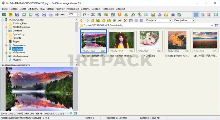 - Поддержка множества форматов, включая JPEG, PNG, GIF, TIFF и RAW