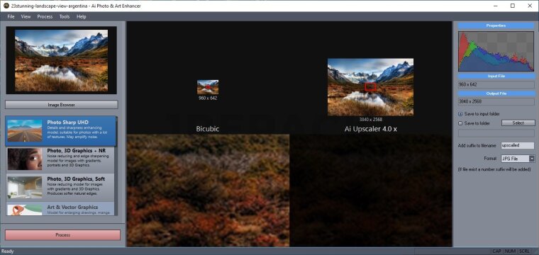 Mediachance AI Photo and Art Enhancer — программа, которая использует технологии искусственного интеллекта для улучшения качества фотографий и цифрового искусства. Программа позволяет увеличивать разрешение изображений, не теряя их четкости, а также улучшать детализацию и цветопередачу. Это полезно для фотографов, художников и дизайнеров, которые работают с графикой и хотят добиться высококачественного результата без искажения оригинала.Основная функция программы — увеличение изображения с минимальными потерями качества. С помощью ИИ-алгоритмов Mediachance AI Photo and Art Enhancer может увеличивать размер фотографии в несколько раз, сохраняя резкость и чёткость, что делает её идеальной для печати больших постеров или баннеров.