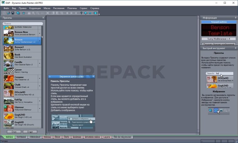 MediaChance Dynamic Auto Painter Pro — это программа для автоматического преобразования фотографий в художественные картины с использованием стилей известных художников и различных техник живописи. Она позволяет создавать цифровые картины с высокой детализацией, имитируя мазки кисти, текстуру холста и уникальные особенности каждого стиля. Такой подход идеально подходит для художников, дизайнеров и любителей, желающих придать своим фотографиям художественный вид.Программа поддерживает различные стили, вдохновлённые работами классических и современных мастеров, таких как Ван Гог, Моне, Сезанн и многих других. Пользователи могут выбирать между стилями и настраивать параметры, чтобы добиться желаемого эффекта, будь то масляная живопись, акварель или пастель. Это делает её гибким инструментом для создания уникальных и персонализированных изображений.