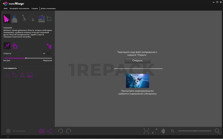 - Интуитивно понятный интерфейс с инструментами для создания анимаций