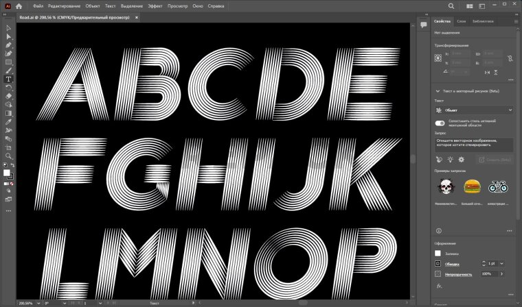Одна из ключевых возможностей Adobe Illustrator — это создание и редактирование текста с возможностью его трансформации в кривые и наложения различных эффектов. Пользователи могут работать с продвинутыми инструментами типографики, включая настройку интервала, межбуквенного расстояния и стилей текста. Это делает программу идеальной для работы с фирменными шрифтами и графическим дизайном.