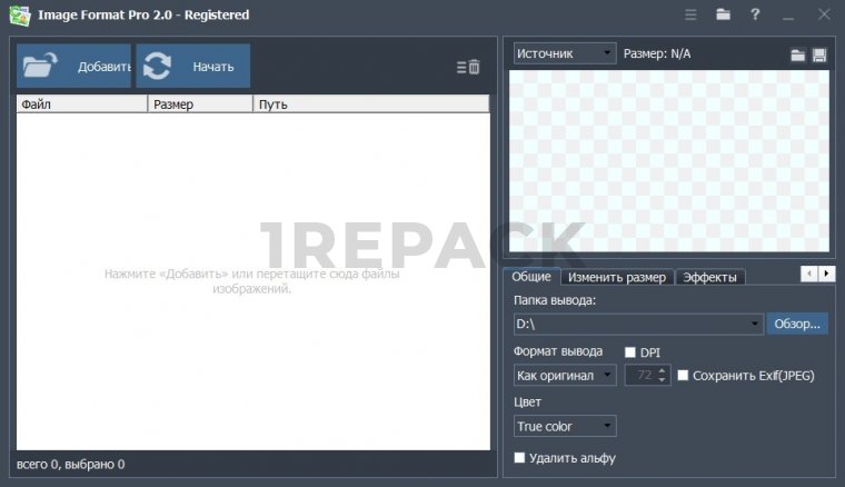 Рабочее окно организовано просто и понятно: все функции сгруппированы по разделам, а интерфейс не требует специальной подготовки. Это делает Image Format Pro удобной как для профессионального применения, так и для повседневных задач — например, чтобы быстро адаптировать фото из телефона под нужный формат без лишнего редактирования.